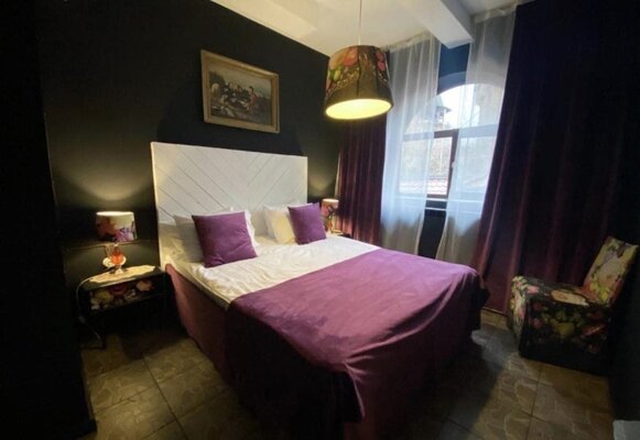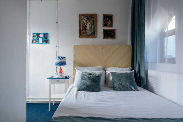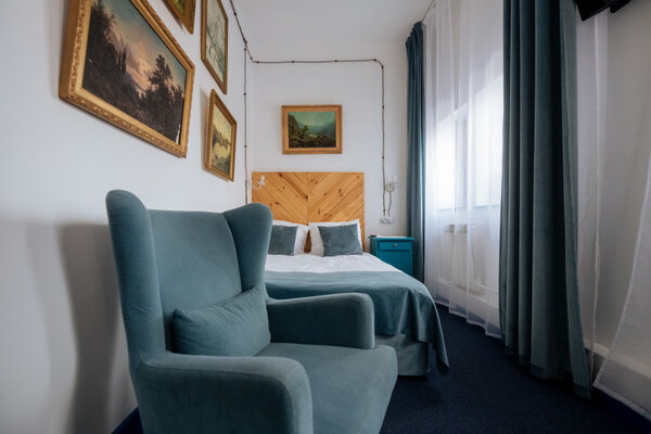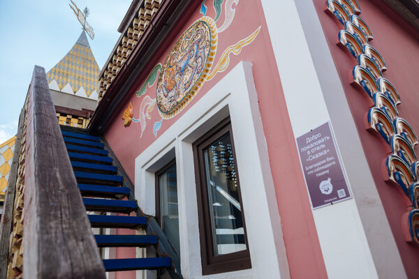 Яркое и красочное здание отеля, украшенное элементами старины, расположилось рядом с Измайловским Вернисажем. Из окон половины номеров открывается завораживающий вид на пруд, парк и усадьбу, а из других — на «Измайловский Кремль», Дворец бракосочетаний, церковь и Вернисаж. В распоряжении гостей уютные стандартные двухместные номера с собственной ванной комнатой, оформленные в различных цветовых гаммах: белой, черной, голубой и синей, и декорированные предметами старины, резными зеркалами и картинами.