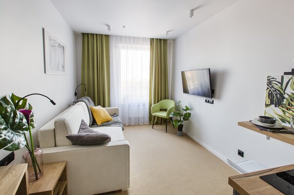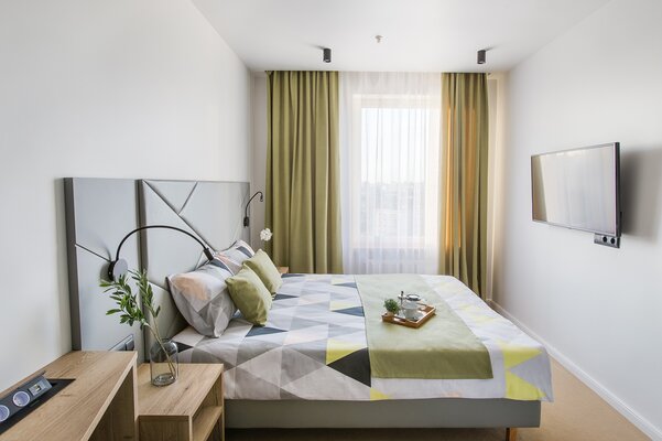 Вас ждут просторные апартаменты на 12-м этаже современного жилого комплекса. В номерах вас встретит продуманный стильный дизайн, выполненный в светлых тонах, а также уютная мини-кухня и просторный санузел с ванной или душем. Апартаменты оборудованы всей необходимой современной техникой. Из окон открываются потрясающие панорамные виды на город и Ботанический сад.