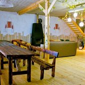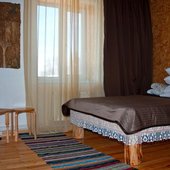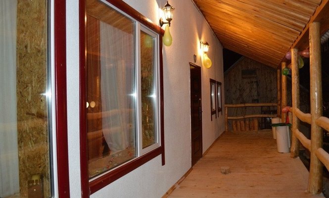 По Рогачёвскому шоссе (трасса Р-113) двигаться от Москвы до деревни Храброво, сразу после деревенской остановки автобусов повернуть направо, через 400 метров будет отель.