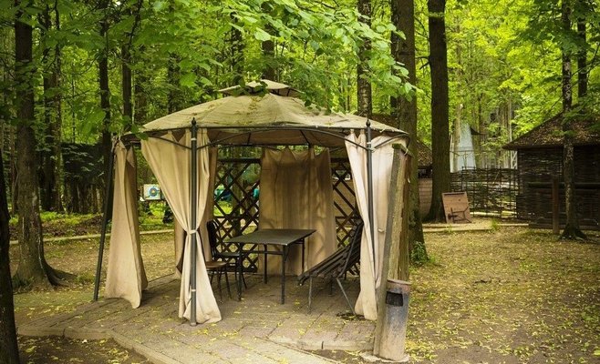 На территории клуба располагается уютный отель, гостевые коттеджи, ресторан с возможностью кейтеринга, финская сауна и площадки для экстремальных видов спорта. Есть возможность снять для большого корпоратива или индивидуального отдыха открытые и закрытые (отапливаемые) беседки.