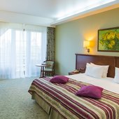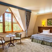 - При размещении в номере 1 взр. и 1 реб. до 6 лет стоимость рассчитывается как за одноместное размещение;