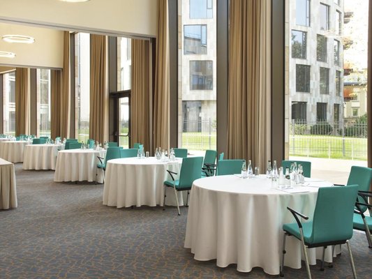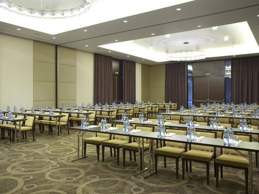 Для проведения деловых встреч, семинаров и конференций предлагается специально оборудованный конференц-зал. На территории работает 10 многофункциональных коференц-площадок с дневным освещением.