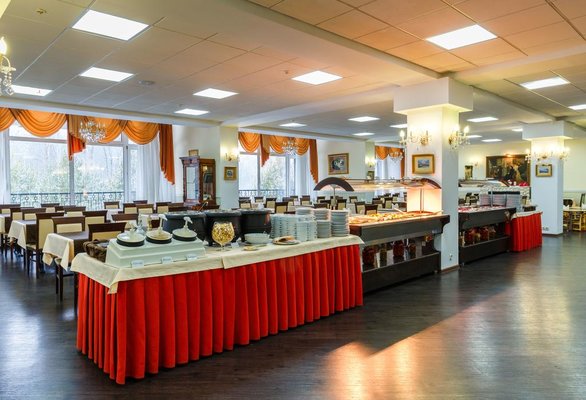 Также круглосуточно для гостей открыт бар «Тироль» с вечерней развлекательной программой и обставленный антикварной мебелью ресторан «Вдохновение», в котором на завтрак, обед и ужин доступны разнообразные блюда шведского стола. Здесь также можно уютно поужинать в романтической обстановке.