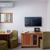 Спелеокамера. Комната с морским воздухом. Стены оборудованы каменными соляными плитами, доставленными с большой глубины бывшего Пермского моря на Урале. Для городских жителей и курящих людей это идеальное средство очищения лёгких, также полезное при частых простудных заболеваниях, способствует повышению иммунитета.