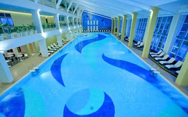 SPA-комплекс «AQUARIUM» предлагает открытый круглогодичный бассейн с морской водой. Вокруг бассейна расположена просторная терраса с многочисленными шезлонгами. Температура воды в бассейне поддерживается на комфортном уровне, что позволяет купаться здесь как в зимний, так и в летний период.