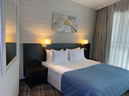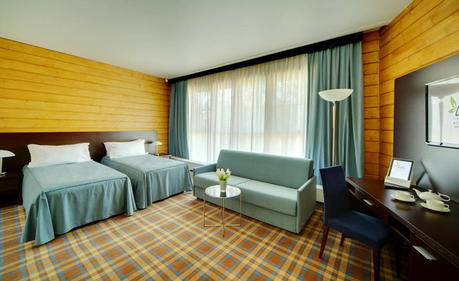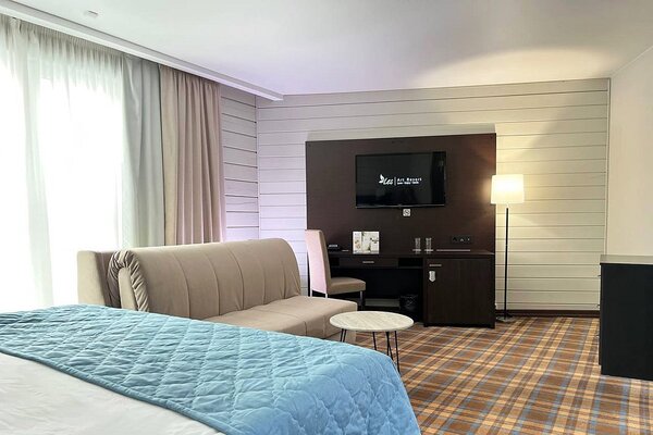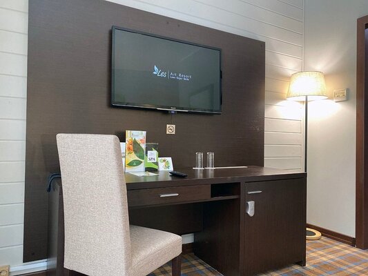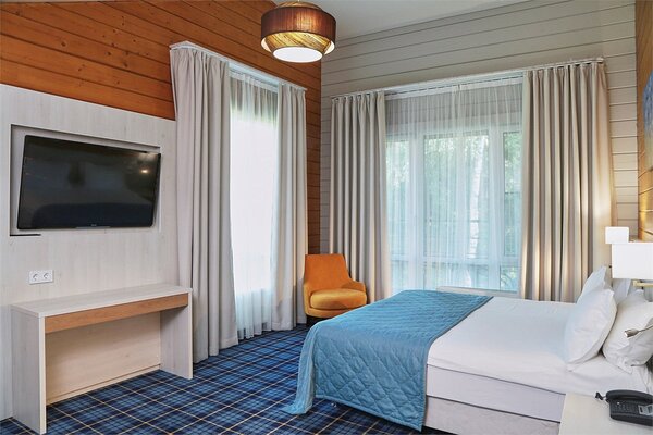 LES Art Resort — это не просто загородный комплекс, а продуманное пространство для полноценного отдыха. К вашим услугам 250 уютных номеров и 10 коттеджей, выполненных в эко-стиле с использованием безопасных материалов. Дизайнерские интерьеры дополнены приятными мелочами: от SPA-косметики и махровых халатов до необходимых средств гигиены и специальных принадлежностей для детей. Номерной фонд включает как отдельно стоящие двухэтажные деревянные коттеджи, так и номера в пяти трехэтажных деревянных гостиницах (по 50 номеров в каждой).