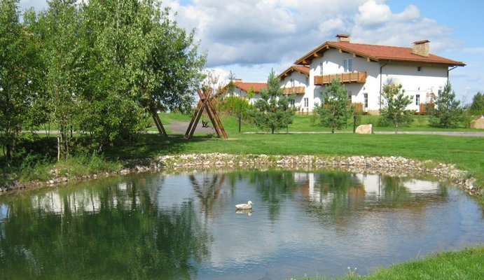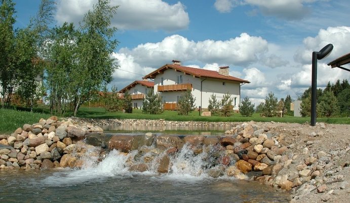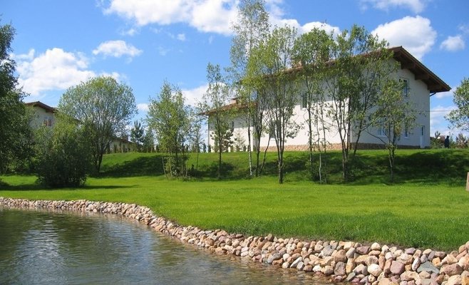 Безопасность в поселке обеспечивает надежная двухуровневая охрана. Ландшафтное оформление поселка, пруд и искусственная река с порогами, просторные лужайки и живые изгороди, прекрасно сочетаются с окружающей природой. (Поселок расположен на территории общей площадью 63 га).