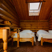 Коттеджный отель — это небольшой поселок из двенадцати двухэтажных деревянных домов и одного шале, рассчитанный на размещение восьмидесяти человек. Все номера, оснащены качественной мебелью, необходимой бытовой техникой — телевизором, стиральной и посудомоечной машиной, микроволновой печью, электрочайником, и собственными ванными комнатами с душевыми кабинами, в шале имеется небольшой бассейн.