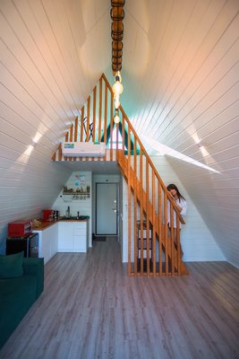 Проживая в уютном домике с просторной гостиной и удобной мебелью, вы сможете также посетить баню, чтобы как следует пропариться и согреться, а затем окунуться в бочку фурако под открытым небом. Таким образом, вы сможете совместить приятное с полезным — отдохнуть и оздоровиться.