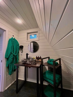 Новая баня в виде бочки, полностью стеклянное окно во двор позволит насладится природой, расслабится и получить пользу. Вы можете взять с собой веники, эфирные масла и ощутить прекрасные моменты вашего отдыха. Для Вас предоставляются полотенца и банные халаты.
