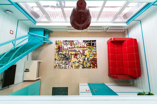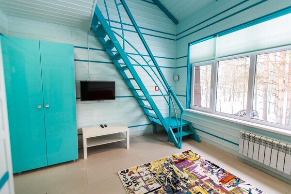 - комната отдыха (фен, зеркало, диван, кухонный гарнитур, посуда, микроволновая печь, электрочайник, мини-холодильник, телевизор, стол, стулья).