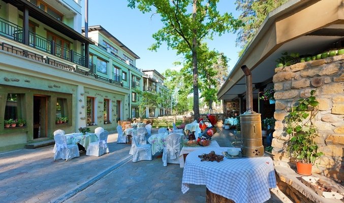 Отдыхал здесь осенью 2015, два дня и одну ночь. В стоимость дома входил завтрак, ходил завтракать в ресторан, который был не далеко от дома. Ресторан, кстати, отличный, красивый. Ужинал там же, дороговато вышло((( Есть обслуживание...