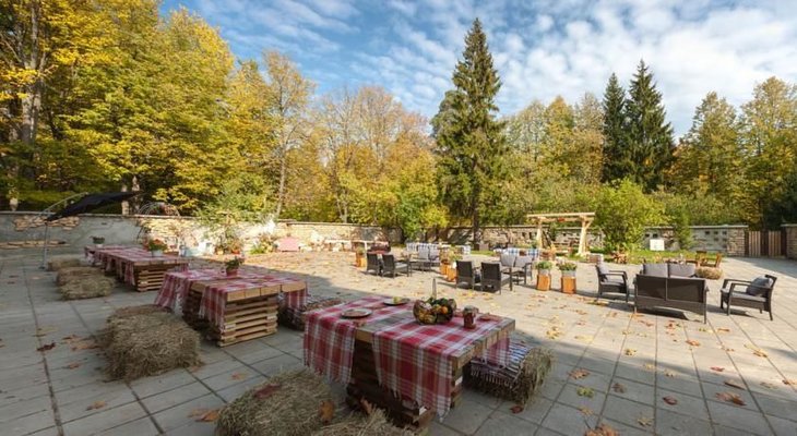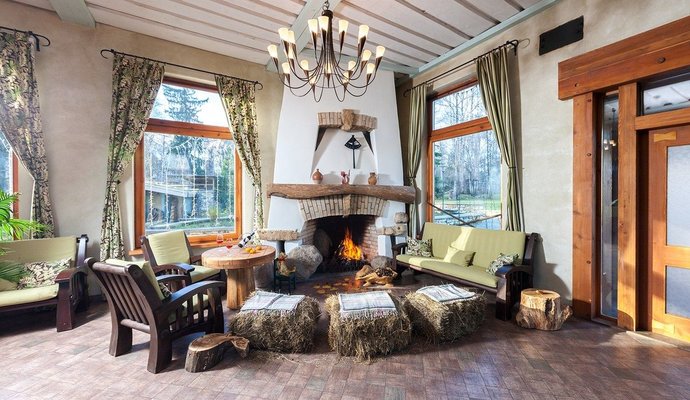 Дома-шале с каминами, дачные квартиры, апартаменты с авторским дизайном...Настоящая баня по-чёрному, всевозможные мастер-классы, верховая езда, посиделки у костра с гитарой и баяном с чашечкой чая из самовара на шишках и рюмочкой таёжной самогонки...