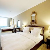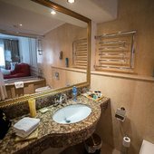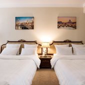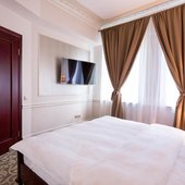 Для проживания предлагаются уютные и светлые номера, которые разделены на несколько категорий. В каждой комнате установлена эргономичная мебель и современная техника. В ванной новая сантехника, а также халаты, тапочки, полотенца и средства личной гигиены. Регулярно проводится уборка и смена постельного белья.