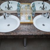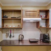 Есть собственный ресторан, в котором сервируется питание для проживающих. Все готовится из экологически чистых продуктов и под управлением опытного повара. По желанию, завтраки могут быть доставлены в апартаменты.