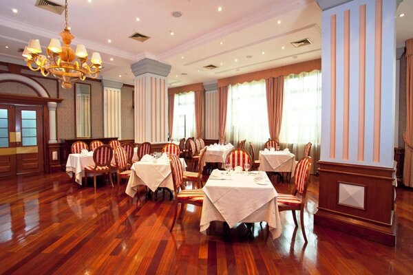 В ресторане «Дворянский» каждый прием пищи превращается в особый ритуал. Завтраки, обеды и ужины здесь подаются в формате «шведского стола», предлагая гостям разнообразие блюд русской и европейской кухни.