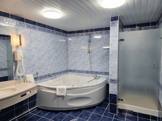 В распоряжении гостей — просторный бассейн для взрослых и отдельный детский бассейн, хаммам с мягким паром, финская сауна, контрастные купели и снежный душ для бодрящего перезагрузки. Всё создано, чтобы каждый нашёл свой ритм расслабления.