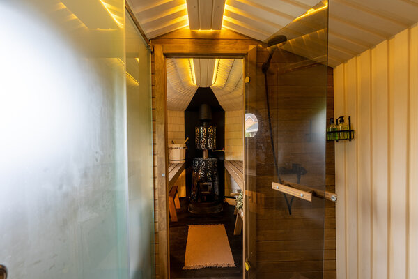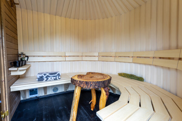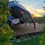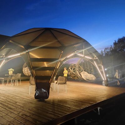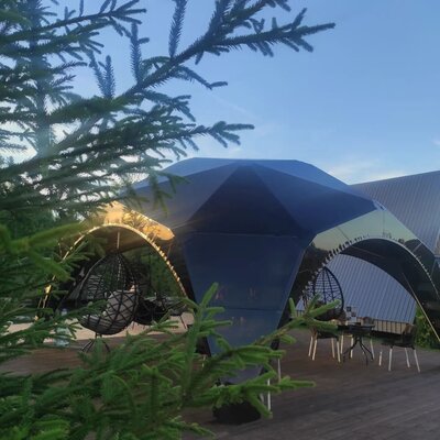 Для вашего удобства в глэмпинге предусмотрены две просторные теплые беседки с прозрачными стенами, которые подарят вам панорамный вид на живописные окрестности в любую погоду, две ароматные бани, привезенные из Карелии, где вы сможете расслабиться и оздоровиться.