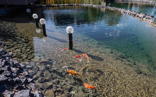 Позагорать на пляже и купаться в кристально чистом пруду.