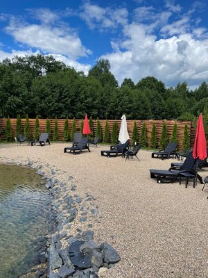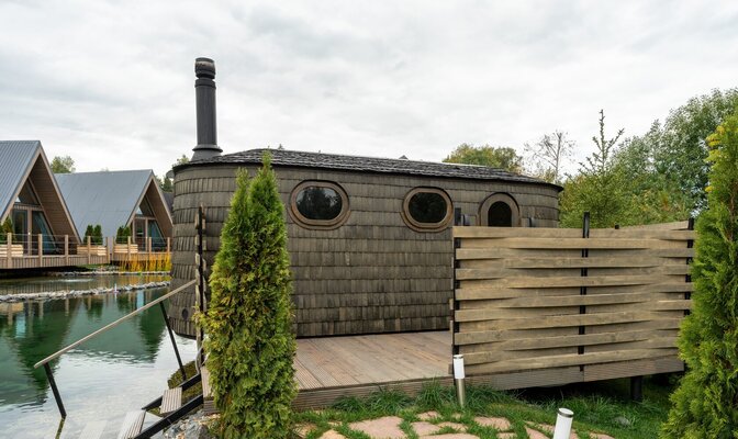 В комплексе вы сможете посетить настоящую Русскую баню, отдохнуть в специальной комнате и искупаться в водоеме. Вместимость до 6 человек.