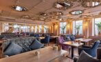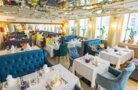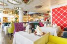 Днем ресторан наполняется естественным светом, который мягко проникает через большие окна, подчеркивая красоту каждой детали. С наступлением вечера он преображается: приглушенный свет создает романтичную атмосферу, идеально подходящую для ужинов при свечах и незабываемых встреч.