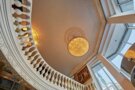 Интерьер выполнен в светлых оттенках, создающих атмосферу легкости и воздушности. Элегантные линии лепнины и зеркальная стена добавляют пространству изысканности и визуального объема, отражая игру света и создавая уникальную атмосферу.