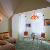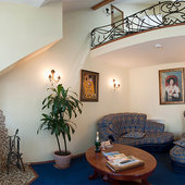 Разносторонняя направленность гостиничного комплекса «Царская деревня» – это то, что существенно отличает его от других гостиниц Подмосковья. Гостям, посетившим город Сергиев Посад с целью командировки или паломнической поездкой, мы можем предложить не дорогие, но со всеми удобствами номера в корпусе «Рождественский». Гостям, желающим отдохнуть от суеты больших городов, семьям с детьми или влюбленным мы предложим расположиться в дизайнерских номерах корпусов Русский терем, Дом княжны Аграфены, Дом Ивана Кафтанникова. Здесь гости смогут ощутить настоящий колорит русской усадьбы: деревянные срубы, уникальность каждого номера, пение птиц, кукареканье петухов. Для проведения свадебных торжеств и деловых мероприятий мы готовы предоставить корпус Боярские палаты – главный корпус гостиницы, в котором находятся роскошный ресторан «Собрание», конференц-зал «Екатерининский», переговорная комната и номера категории «Комфорт» и Люкс, многие из которых имеют прямой вид на Лавру…