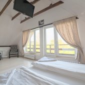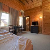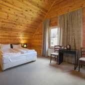 Гостиничный комплекс располагает комфортными номерами и коттеджами, в которых одновременно смогут разместиться до 150 гостей. На территории загородного клуба работают рестораны «LaMachta» и «Маяк», есть открытая веранда.