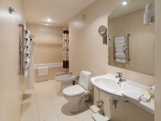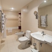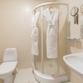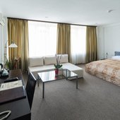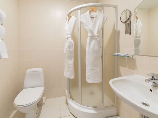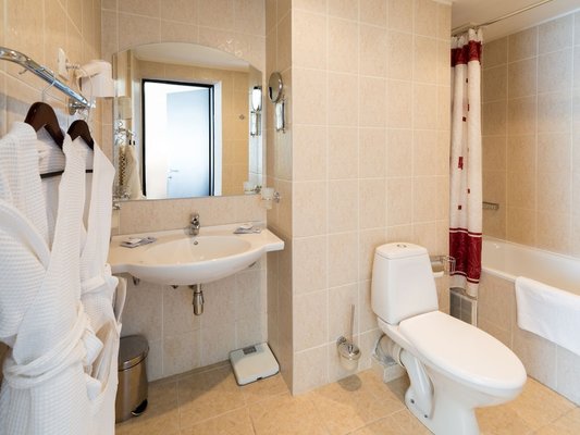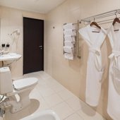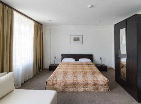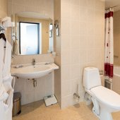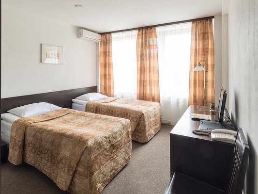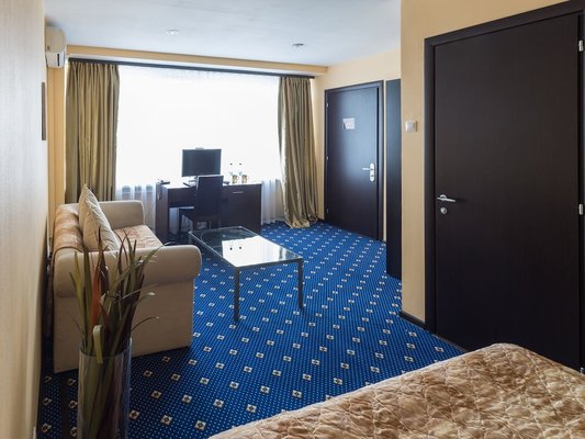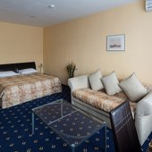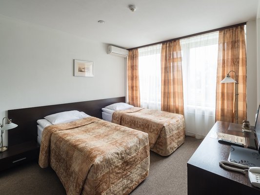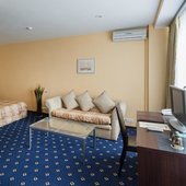 Номера оформлены в современном стиле, светлые тона прекрасно сочетаются с мебелью из темного дерева. Номера оснащены телевизором, кондиционером, телефоном и мини-холодильником. В собственной ванной комнате имеется комплект полотенец, тапочки и халат.