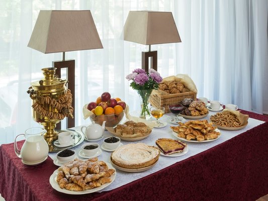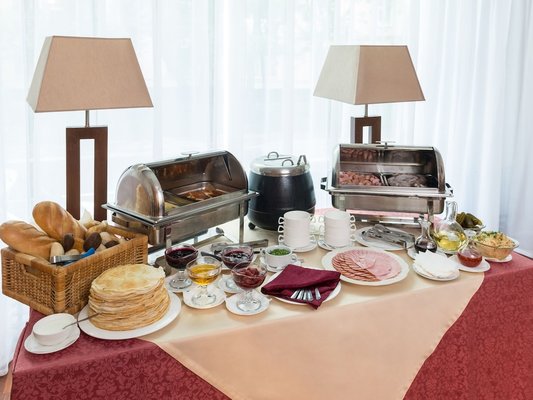 Ресторан «Сезон» располагает современным стилем. По утрам накрывается завтрак «Шведский стол», на обед можно заказать бизнес-ланч. По вечерам в баре подаются алкогольные и безалкогольные напитки.