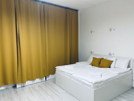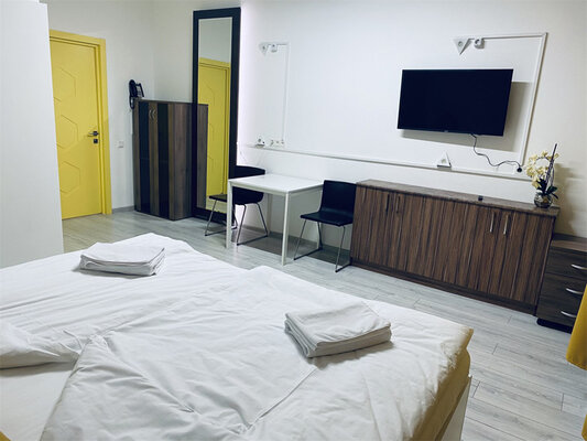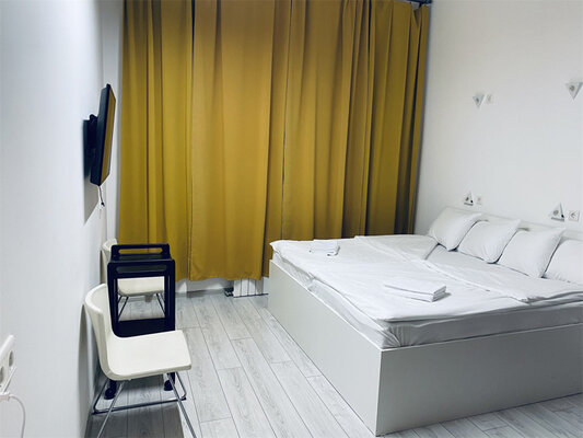 Поездом до ж/д вокзала Белорусский, далее на рейсовом автобусе №Е30 до остановки «15-й автобусный парк», далее на маршрутке №1233К до остановки «Павшинский бульвар», далее пройти пешком 56 м до отеля.