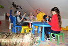 Здесь есть все необходимое для увлекательного и безопасного досуга: функциональная мебель из натуральной древесины и мягкие пуфики, большой выбор игрушек, игровые модули и игры на развитие мелкой моторики, все необходимые материалы для реализации творческих идей. Пол устлан мягким ковровым покрытием.