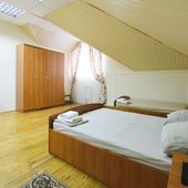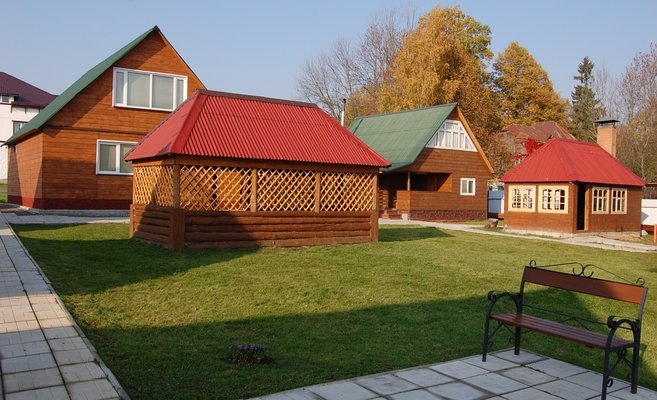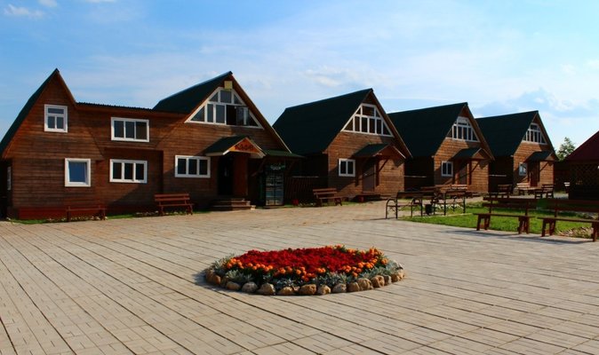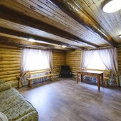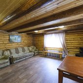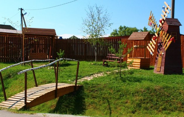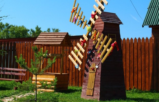 - две деревянные двухэтажные русские бани на дровах с небольшим бассейном. между банями расположен настоящий деревянный колодец;