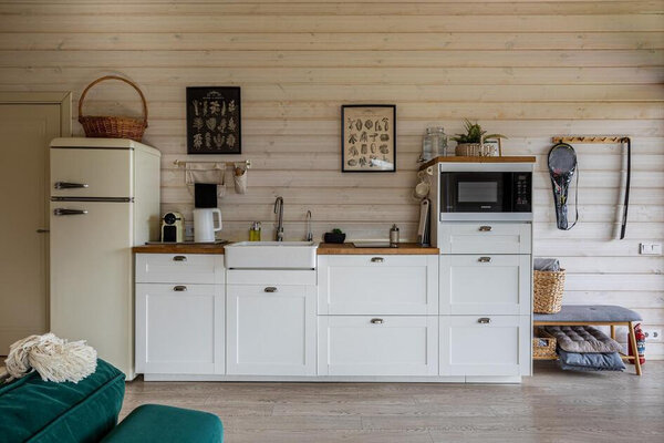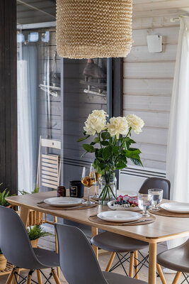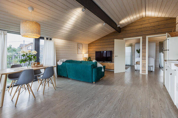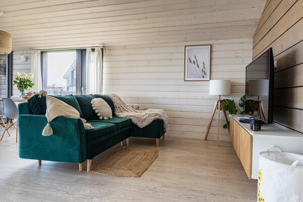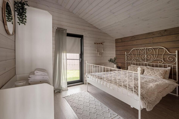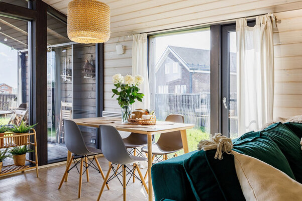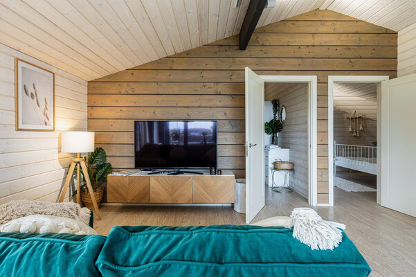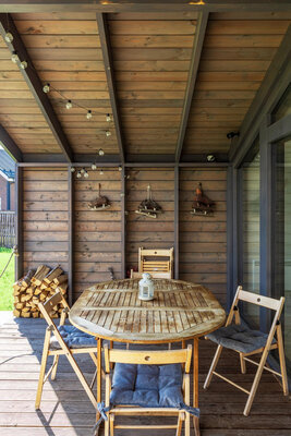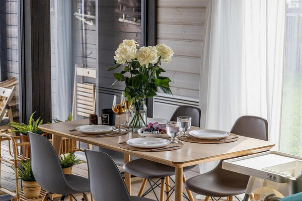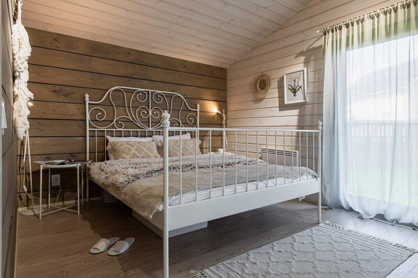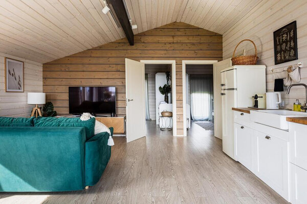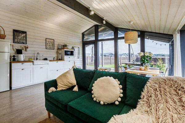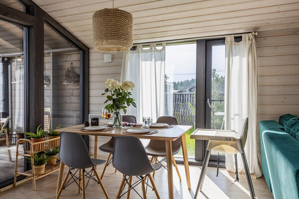 Просторная гостиная с камином приглашает к уютным вечерам, а две комфортабельные спальни гарантируют полноценный сон. Полностью оборудованная кухня позволит вам почувствовать себя настоящим шеф-поваром. Главная изюминка — собственная сауна, доступная в любое время. После парной насладитесь свежим воздухом и панорамными видами с большой террасы, где можно устроить пикник с шашлыком на мангале или вечерние посиделки у костра под звездным небом.