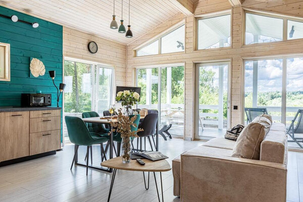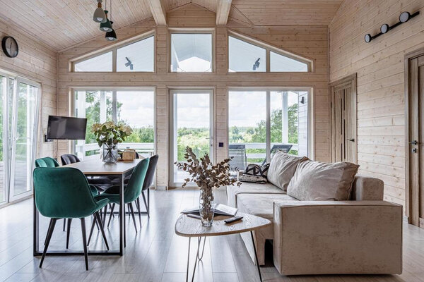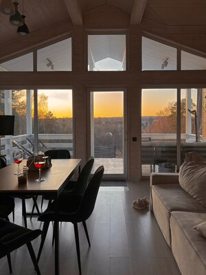«Видовой White с сауной и чаном» — это просторное убежище с панорамными окнами, откуда открываются захватывающие виды на природу. Светлый и уютный интерьер приглашает к полному релаксу, позволяя забыть о городской суете и провести незабываемое время с близкими.