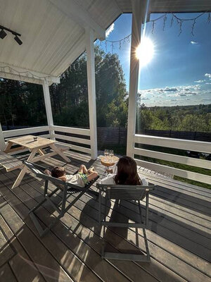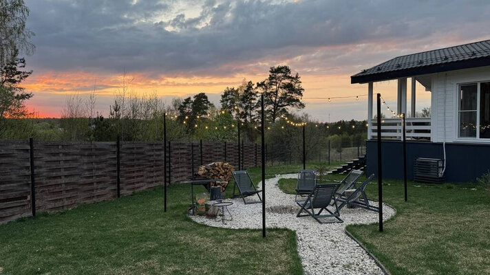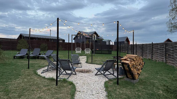 На девяти сотках благоустроенной территории вас ждет терраса для завтраков на свежем воздухе, место для солнечных ванн, мангал для кулинарных шедевров и костровая зона для вечерних посиделок под звездами. Безопасность обеспечивается видеонаблюдением. «Видовой White» — идеальное место для восстановления сил, гармонии с природой и полного уединения.