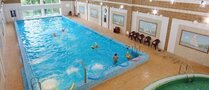 Большой плавательный бассейн с панорамными окнами, оснащенный гидромассажем и каскадной горкой. Для посещения бассейна необходимо предоставить медицинскую справку, оформить которую Вы можете у местного врача.