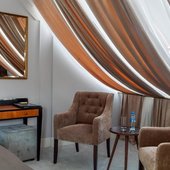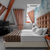 Все номера выполнены в современном стиле и приятной цветовой гамме, изысканный дизайн продуманные до мелочей удобства, позволят сделать отдых незабываемым и по-домашнему уютным. Комната обустроена: комфортными спальными местами, мягкой мебелью, прикроватными тумбами со светильниками, сплит-системами, спутниковым телевидением, персональной душевой с гигиеническими принадлежностями.