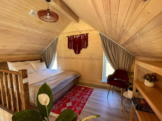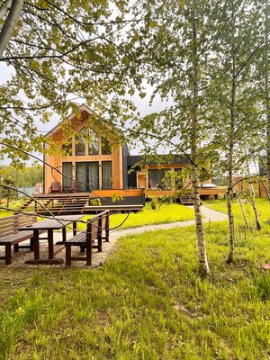 Насладитесь тихим загородным отдыхом в вилле «Першино», расположенной всего в 55 км от Москвы, на живописном берегу реки Ольховка. К вашим услугам пять уютных домиков, создающих атмосферу дачного уюта, идеально подходящих для семей, романтических пар и дружеских встреч. Выбирайте между просторным домом с баней на 6 человек и четырьмя комфортабельными домиками на 2-4 гостя.