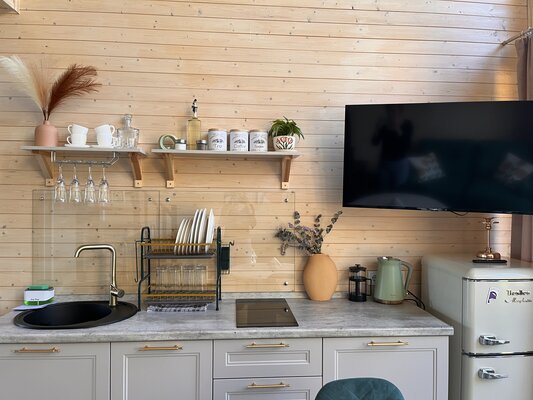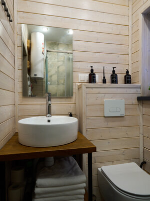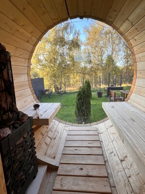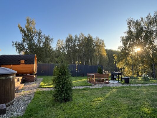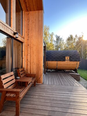 Баня доступна только при аренде дома. Есть возможность заказать сразу вместе с купелью.