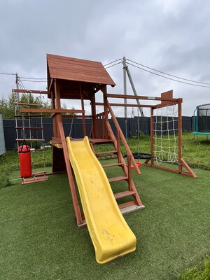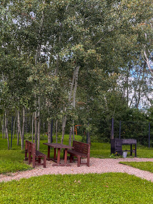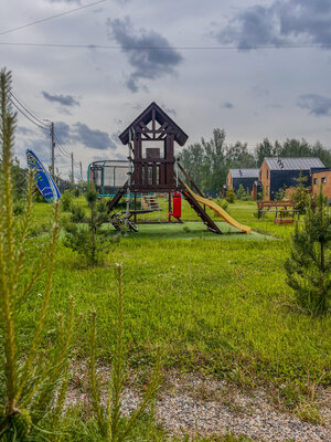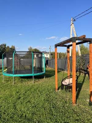 Для маленьких гостей есть детская площадка. И большой батут, на котором могут прыгать и дети в взрослые.