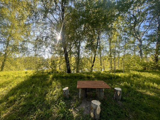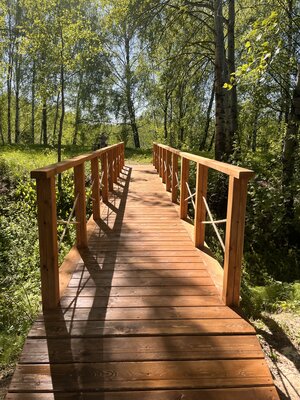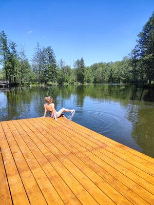 На реке есть небольшой пирс. На нем можно загорать, устроить пикник, рыбачить и любоваться красивым видом реки. С пирса удобно спускаться на сапборды.