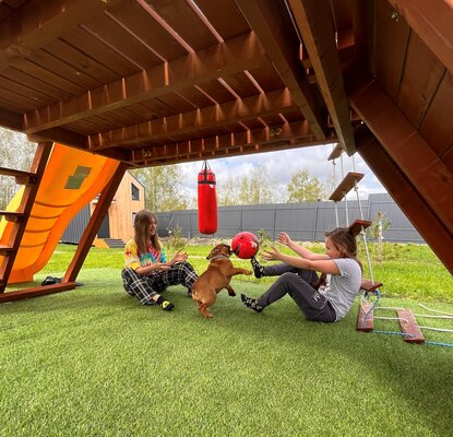 Разрешено проживание с собаками до 15 кг, а так же с кошками. Обязательное условие — животное воспитано, не портит мебель и приучен к туалету в положенном месте. Выгул собак — за территорией. За питомца взимается дополнительная плата.