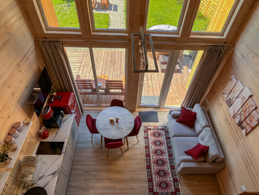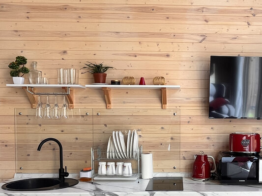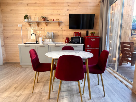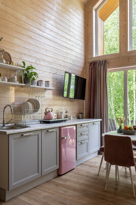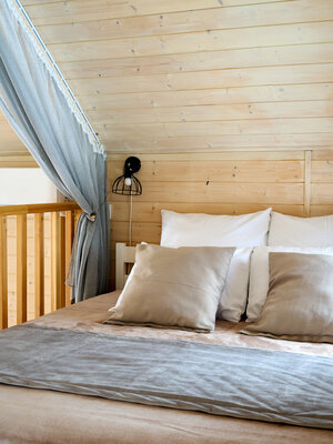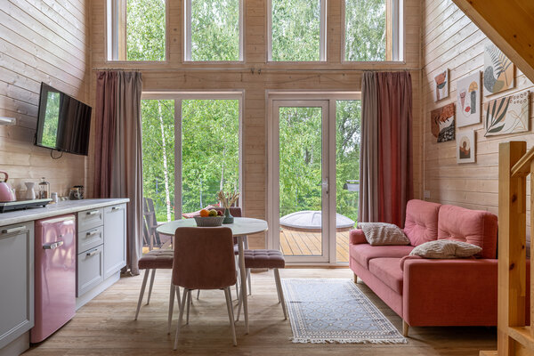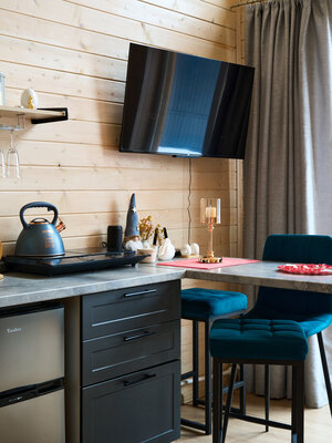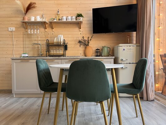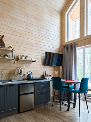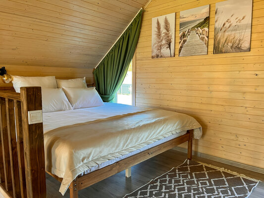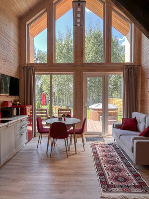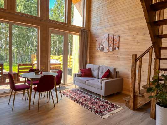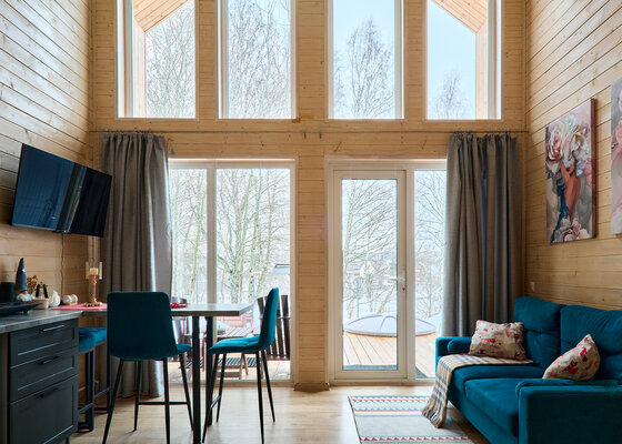 Каждый домик оснащен террасой, горячей купелью и зоной барбекю с прекрасным видом на природу. Рыбалка, прогулки по лесу, сап-борды и велосипеды — вилла «Першино» предлагает все для активного и расслабляющего отдыха. Для детей предусмотрена площадка, батут и спортивная зона. На территории есть парковка для автомобилей.
