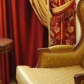 Камерный и уютный, декорирован материалами цвета золота и охры, подчеркивающими изысканную полуформальную атмосферу. Идеальное решение для уединенной беседы или организации личного торжества.
