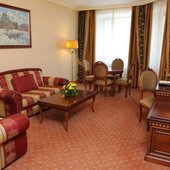 Элегантный, светлый и универсальный балкон, с большими окнами и живописным видом на территорию отеля. Классический дизайн выдержан в спокойных и теплых оттенках интерьера. Прекрасно подходит для переговоров или пресс-центра.