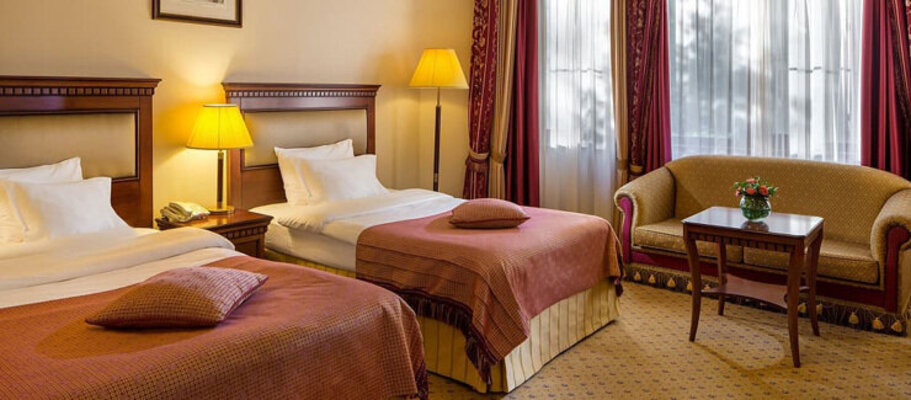 Отель предлагает несколько корпусов с комфортабельными номерами, оформленными в изысканном классическом стиле. Каждый номер оборудован ванной комнатой с косметическими наборами и халатами, а также стандартными удобствами, включая кабельное телевидение, кондиционер, высокоскоростной Wi-Fi и мини-бар.