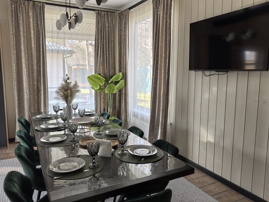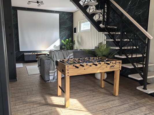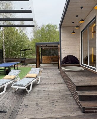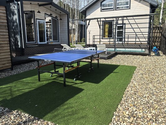 Оцените персональный открытый бассейн с подогревом и баню, расположенные прямо возле вашего дома. Для любителей барбекю предусмотрены мангалы, а для истинного расслабления — горячий банный чан и освежающая купель. Вечерами вас ждут развлечения на любой вкус: от настольных игр до теннисного корта, футбольного поля и домашнего кинотеатра. Позвольте себе раствориться в звуках леса, пении птиц и шелесте листвы, наслаждаясь каждым мгновением в этом райском уголке.