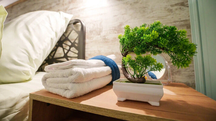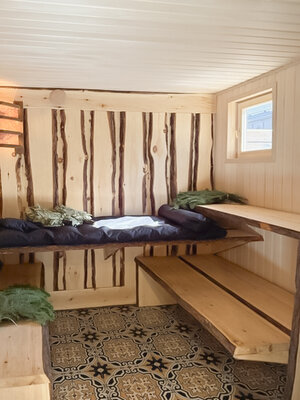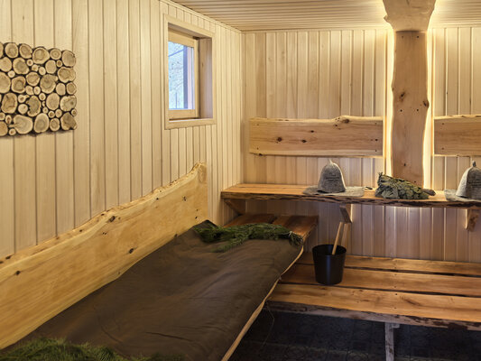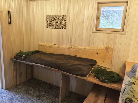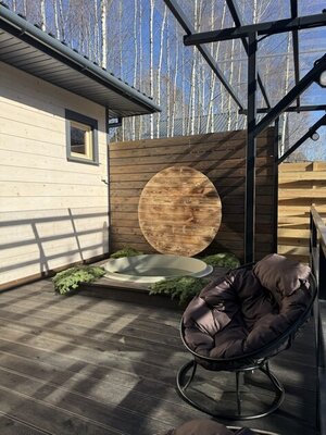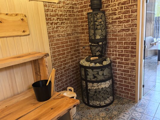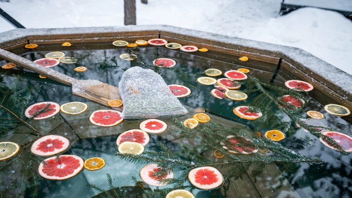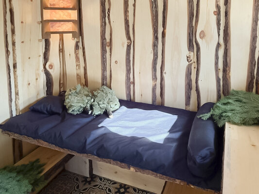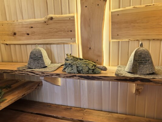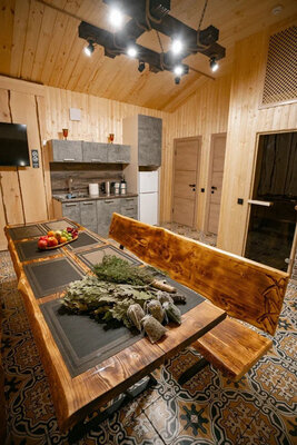 На территории уютного дома «Семейный дворик» расположена баня из благородного сибирского кедра, которая топится исключительно дровами. Внутри гостей ожидают мягкие банные полотенца, березовый веник и четыре изысканных вида ароматного травяного чая, создающих атмосферу покоя и умиротворения.