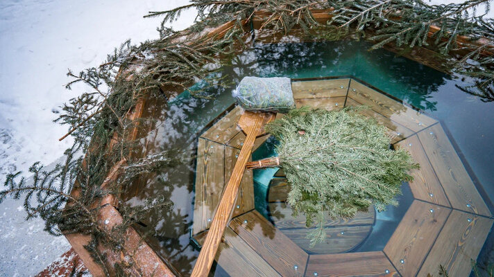 После парной, где воздух пропитан целебными парами, гости могут освежиться в бассейне, который входит в стоимость посещения.
